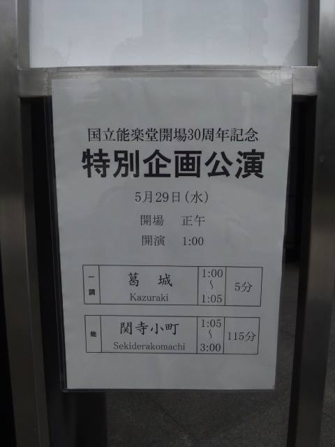 本日、1ヶ月ぶりのお能、しかも、数年ぶりの「関寺小町」を拝見できるとあって、私は気合いが入っていました。午後休をとり、一刻も早く着きたいので「特急あずさ号」に乗って、職場から国立能楽堂へ。