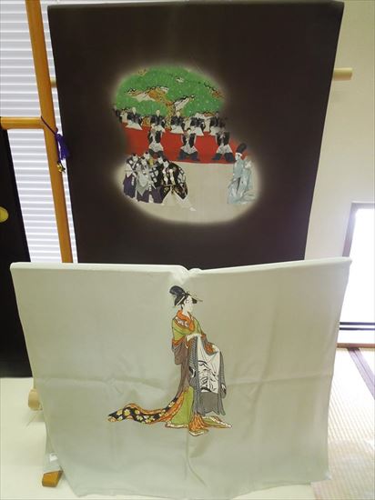 着付教室の催しで、着物の問屋さんの勉強会に参加してきました。歌舞伎の絵柄の帯を見たり、帯締めの種類について学んだり、最後は秋のコーディネートを参加者全員で実践。それにしても、勧進帳の帯を締めるにはまだまだ修行(度胸)が足りませんね!