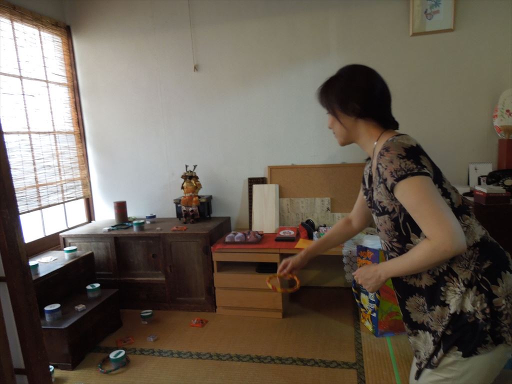 次は輪投げに挑戦!5回投げて目標の筒に輪が入れば景品をもらえます。