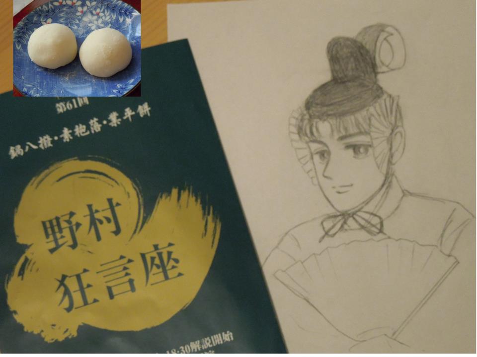今回、席が最後列で、萬斎さまのお顔が良く見えませんでしたので、イラストはあくまでイメージです!!