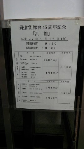 2月17日、乱能を拝見してきました。乱能とは、シテ方、ワキ方、狂言方、囃子方の玄人全員が専門外のお役を担当して行う演能形式です。歌舞伎や文楽で言うところの天地会みたいなものです。