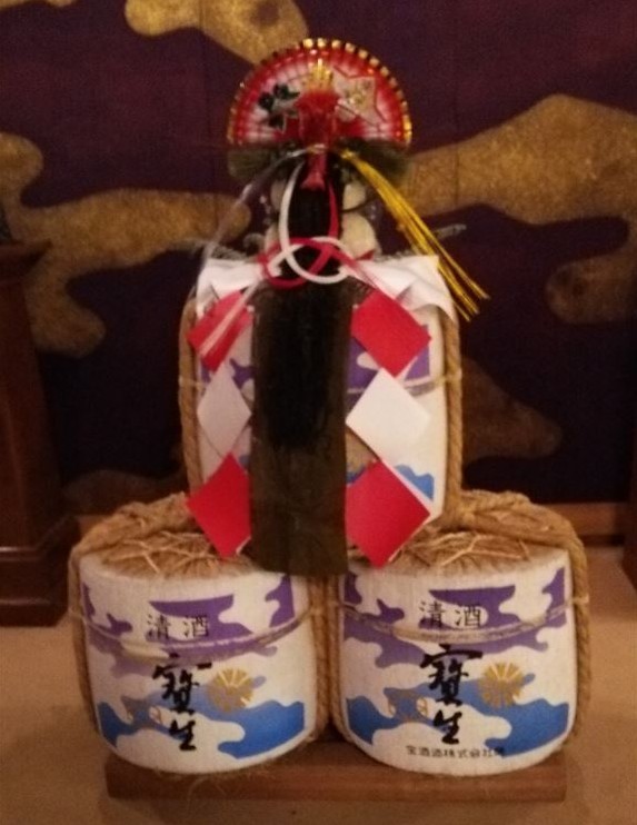 弓矢立合が終わった後、御奏者番が宗家(観世宗家だったと思う)に布と思しきもの(小袖かな…?)を渡しました。そして、御奏者番はおもむろに自分の肩衣を脱ぎだしました!(何??いったい何が始まるの!?と一瞬焦るワタクシ。袴まで脱ぎださなくて良かった…。←何考えてるんでしょうかね。笑)そして脱いだ肩衣を軽くたたんで床に放り投げました。宗家(だったと思うがどっち?金春?金剛?両方?もはや記憶が…(゚_゚;))が前に進み脱ぎ捨てられた肩衣を拾って戻ります。後ろで二人の御使番も肩衣を脱いでいます。こちらは放り投げずたたんで自分たちのそばに置きます。